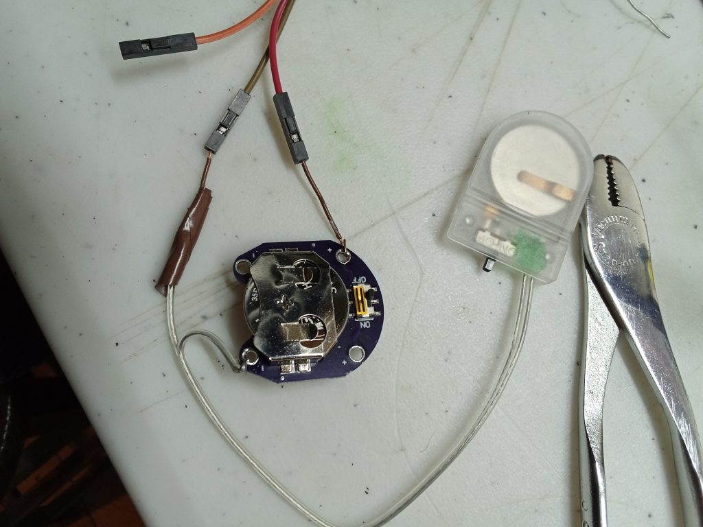 I’m using a couple of CR2032 batteries to provide external power to the Watt’s Up meter so the amp-hour data will be preserved when the pack shuts down.