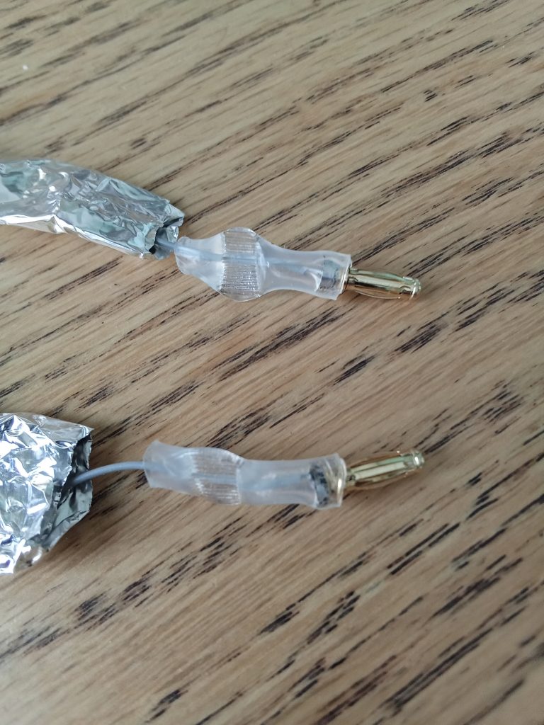 Twelve dollars and three days later, I had a new box of clear, glue-lined tubing, and I was ready for the final step: covering the 3 mm connectors I attached to the leads of the transformer.