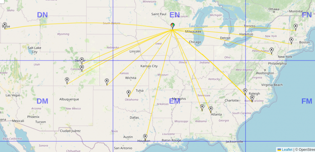 After an initial rush, calls tapered off and QRM started coming up; first a tuner-upper, then a round-table in Spanish that kept increasing in strength. QSY, only to find even louder interference. QSY again. OK, this is good. Re-re-spot.